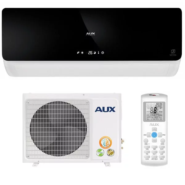 Практически все кондиционеры AUX работают как на охлаждение, так и на обогрев. Например, AUX ASW-H07B4/FJ-BR1 AS-H07B4/FJ-R1 работает на тепло при -7 — 24 С° на улице. Так что такой кондиционер с успехом может заменить электрический обогреватель. Но только при указанной температуре, при более низких значениях кондиционер использовать нельзя.