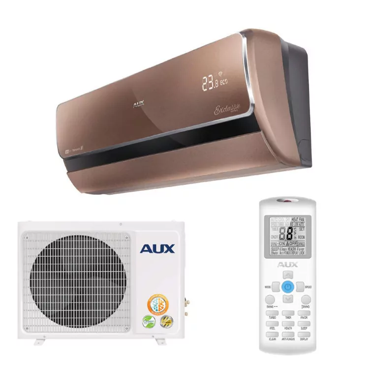 Практически все кондиционеры AUX работают как на охлаждение, так и на обогрев. Например, AUX ASW-H09A4/LA-800R1DI AS-H09A4/LA-R1DI работает на тепло при -15 — 24 С° на улице. Так что такой кондиционер с успехом может заменить электрический обогреватель. Но только при указанной температуре, при более низких значениях кондиционер использовать нельзя.