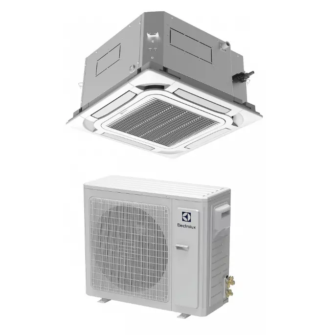 Кассетный кондиционер Electrolux EACC-12H/UP3-DC/N8 - модель для встраивания в подвесной потолок. Внутренний блок выполнен в виде кассеты, которая вставляется в подпотолочное пространство. Размещая один или несколько блоков, можно охладить даже очень большой офис или магазин. За счет распределения прохладного воздуха в 4 стороны охлаждение происходит равномерно и без лишнего сквозняка.