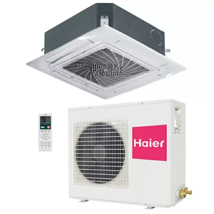 Кассетный кондиционер Haier AB35S2SC2FA / 1U35S2SM2FA - модель для встраивания в подвесной потолок. Внутренний блок выполнен в виде кассеты, которая вставляется в подпотолочное пространство. Размещая один или несколько блоков, можно охладить даже очень большой офис или магазин. За счет распределения прохладного воздуха в 4 стороны охлаждение происходит равномерно и без лишнего сквозняка.