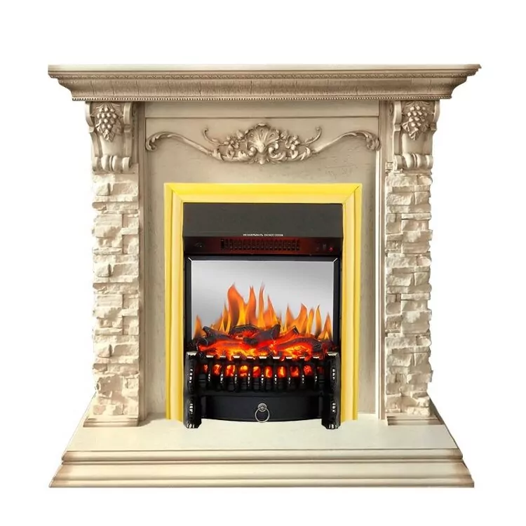 Электрокамин Royal Flame Adriana - Cлоновая кость с очагом Fobos FX M Brass - качественный продукт от известного производителя. Это полностью готовый электрический камин. То есть он уже включает в себя и портал, и очаг. Причем электроочаг уже встроен внутрь портала. Поэтому для того, чтобы запустить камин, нужно только включить его в розетку.