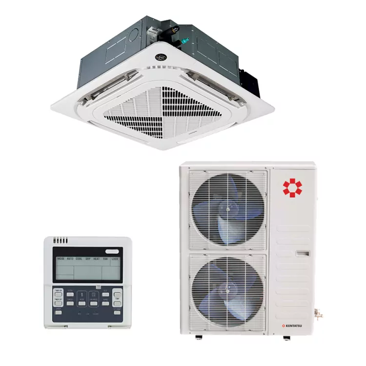 Кассетный кондиционер Kentatsu KSVQ176HFAN3/KSUT176HFAN3/-40/KPU95-D1 - модель для встраивания в подвесной потолок. Внутренний блок выполнен в виде кассеты, которая вставляется в подпотолочное пространство. Размещая один или несколько блоков, можно охладить даже очень большой офис или магазин. За счет распределения прохладного воздуха в 4 стороны охлаждение происходит равномерно и без лишнего сквозняка.