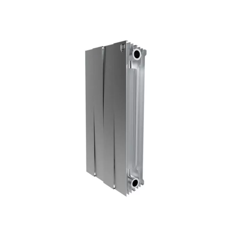 Биметаллический радиатор Royal Thermo PianoForte 500 4 секции Silver Satin оснащён стальным коллектором, полностью заключённым в алюминиевый корпус. Биметалл повышает надёжность и устойчивость к перепадам давления и коррозии, что особенно важно при работе в централизованных системах отопления.