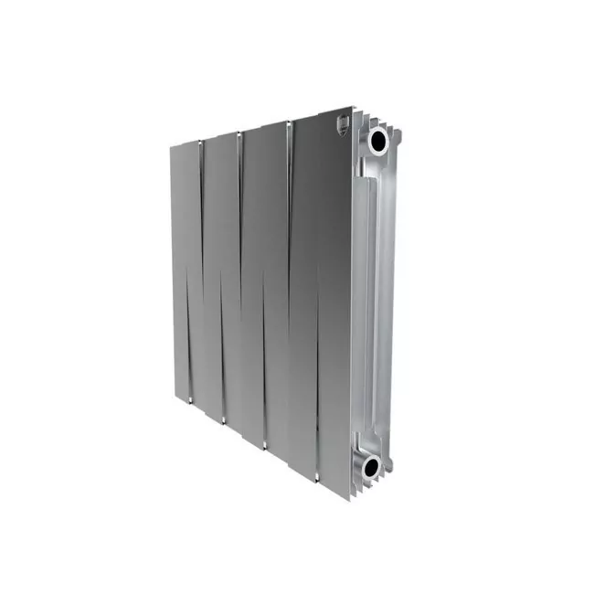 Биметаллический радиатор Royal Thermo PianoForte 500 8 секции Silver Satin оснащён стальным коллектором, полностью заключённым в алюминиевый корпус. Биметалл повышает надёжность и устойчивость к перепадам давления и коррозии, что особенно важно при работе в централизованных системах отопления.