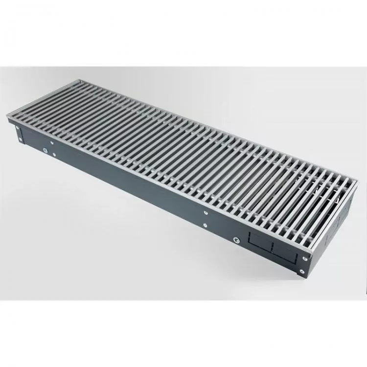 Для предотвращения коррозии все детали конвектора выполнены из высококачественной листовой оцинкованной стали с износостойким порошковым покрытием. Два типа профиля (U-образный и F-образный) декоративной рамки позволяют встраивать конвектор в любой тип пола. Тип профиля рамки не влияет на стоимость конвектора. Труба теплообменника выполнена из цельной медной трубы. Узел подключения с внутренней резьбой 1/2″ оборудован воздушным спускником.